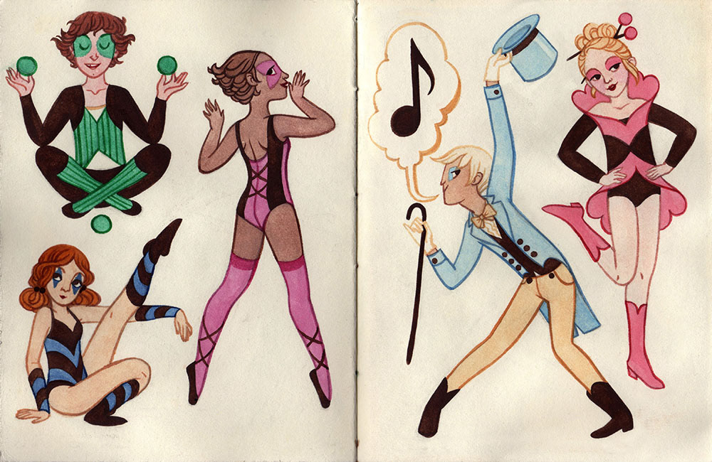 A collection of circus themed paper dolls based on characters from my sketchbook.