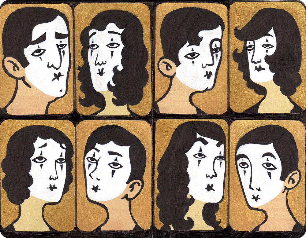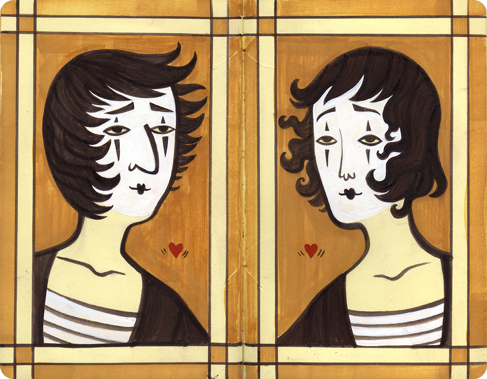 These are a few of my favorite pages from a pair of mini moleskine sketchbooks. The sketchbooks shown here are not truly sketchbooks at all - they are more like little books of experiments. The images are closer to neatly finished illustrations than they are to sketches, which is why I call this kind of sketchbook a "neatbook."