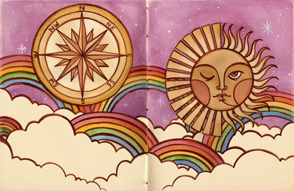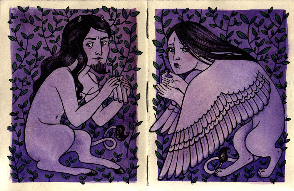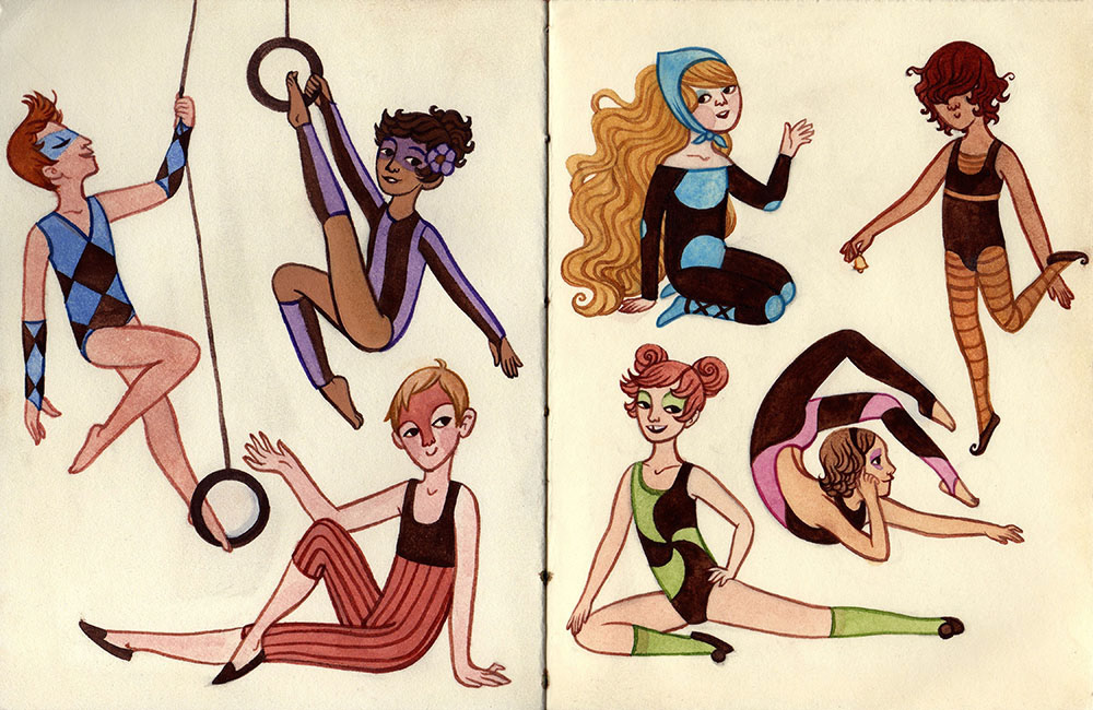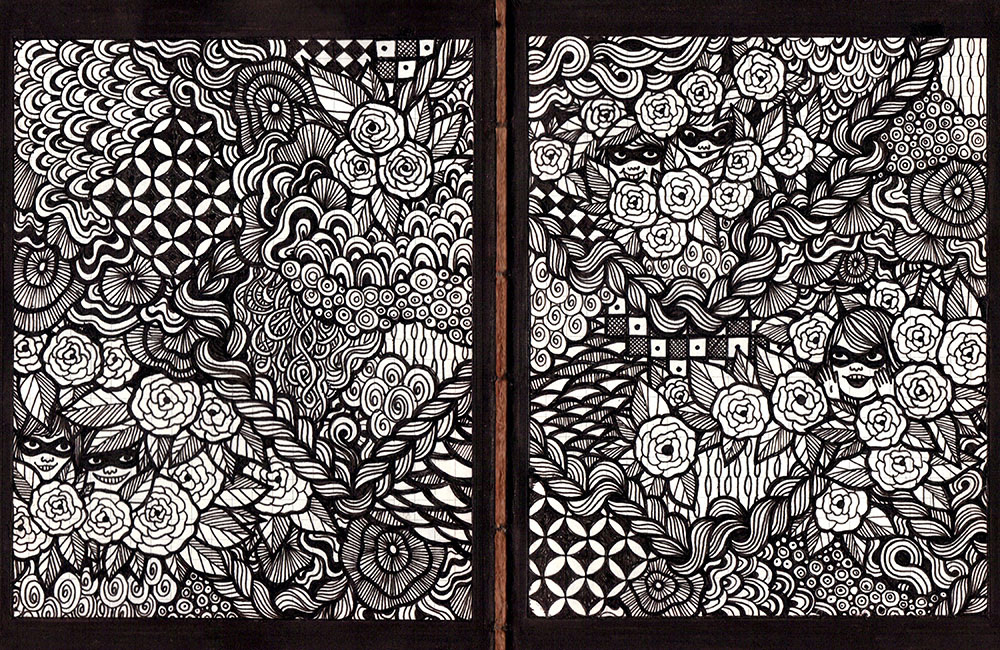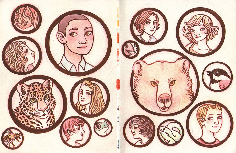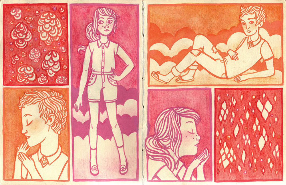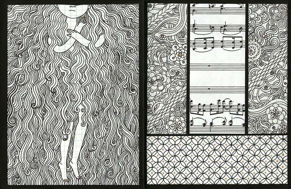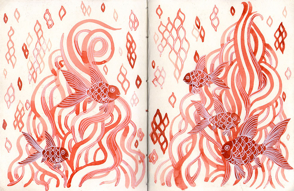 These are a few pages from another sketchbook. The sketchbook shown here is more like a book of experiments. The images are closer to finished illustrations than they are to sketches. That's why I consider these kinds of sketchbooks "neatbooks."